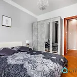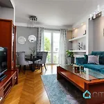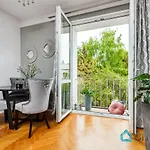 The apartment provides coffee/tea making machines and an equipped kitchenette with a refrigerator, an oven, and kitchenware. The 50 m^2 apartment is really close to Fredry 02 bus station. Thanks to luxuries such as an aqua park, a courtyard, and a garden, the ultimate relaxation is provided. Guests might engage in activities like hiking, bowling, and cycling.